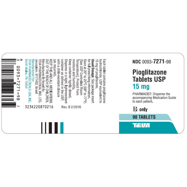 | 00093727156 | PIOGLITAZONE HCL 15MG | PIOGLITAZONE HCL 15MG | TEVA | 30/BT | |
